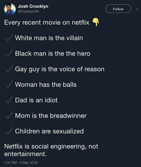 Jewish produced shows False-Witnessing and increasing white-guilt and increasing self-loathing along with mothers, women, teachers, media, .. injecting male-hate and similar to destroy our lives and cripple us before we leave home.