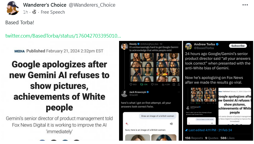 Every time I run into things that are purposely evil and mind-raping when they could have been fantastic resource .. like Google, Wikipedia, YouTube, .. and now AI. How will anyone every trust AI when clearly being warped by Witches and mind-Raping Satanic horrors, so many white-hating history rewriting examples are available. What level of public execution and scrubbing of all powerful families from breathing in public, and a serious set of punishment for False-Witnessing and anything to do with unTruth and intentional warping information .. Never, of course. Every search on search engines (not only Google – they all have Talmud-Sickened Satanic Venture-Capitalist control - should cause you to ask what is missing, and something like Wikipedia which could have been something wonderful now if educators assigned students to make additions and maintain them, and such instead of the Howling retarded lazy cnt Witches screeching about students 'copying' from it, and similar – those people are bugger-eating mind-broken cnts that should never be near children.