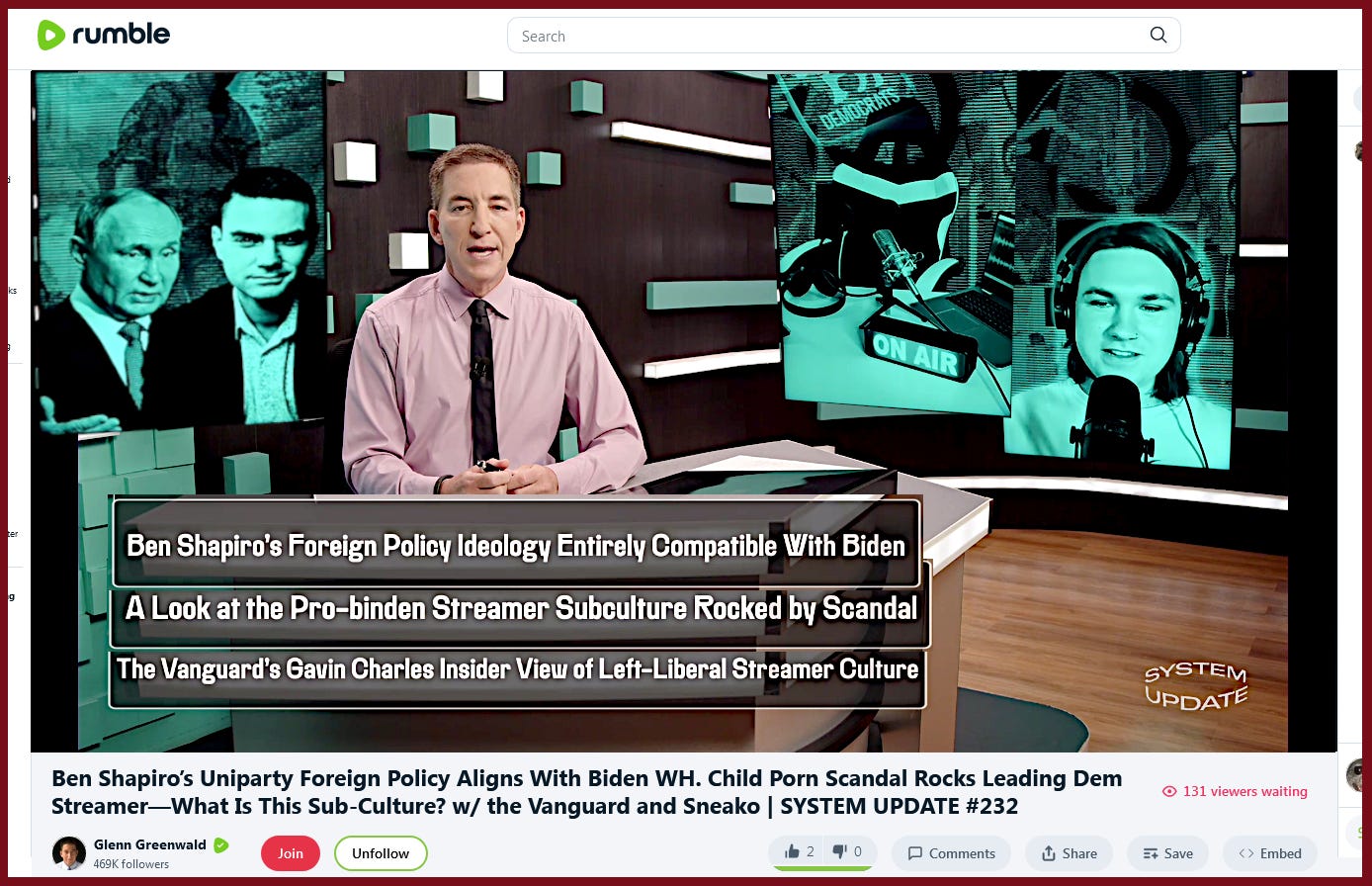 “Ben Shapiro’s Uniparty Foreign Policy Aligns With Biden WH. Child Porn Scandal Rocks Leading Dem Streamer—What Is This Sub-Culture? w/ the Vanguard | SYSTEM UPDATE #232”