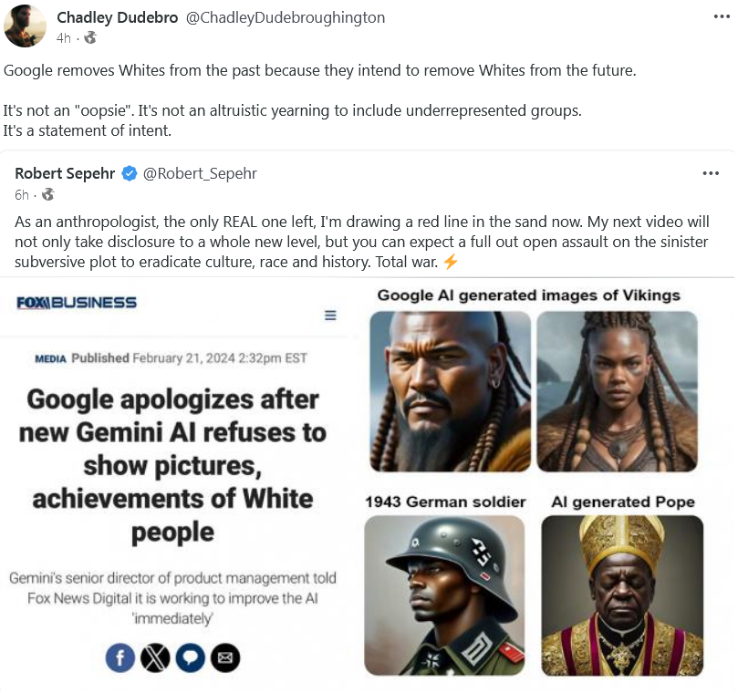 “Google's New Anti-White A.I. Image Generator "Gemini" is So Woke You Have To See It To Believe It”