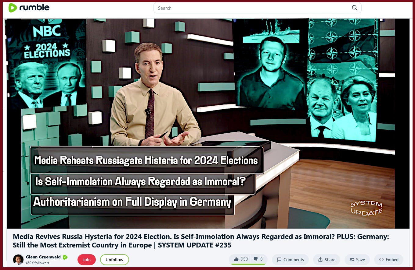 “Media Revives Russia Hysteria for 2024 Election. Is Self-Immolation Always Regarded as Immoral? PLUS: Germany: Still the Most Extremist Country in Europe | SYSTEM UPDATE #235”