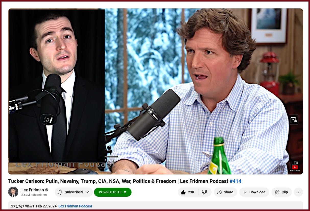 “Tucker Carlson: Putin, Navalny, Trump, CIA, NSA, War, Politics & Freedom | Lex Fridman Podcast #414”