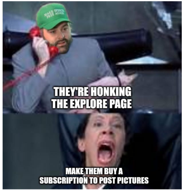 Something is going on with GAB – the place I grab all those memes I put in SubStack version of this Daily Journal. Looks like GAB will require a professional (paid) version to post memes and such, so many will of the regulars I draw from will – like me – be unable to pay, so they may dry-up and my Status version will likely end there also. I do not know the details – perhaps GAB will still allow one or two per day without a Pro-version, but that is likely me making more sense then this world can expect.
