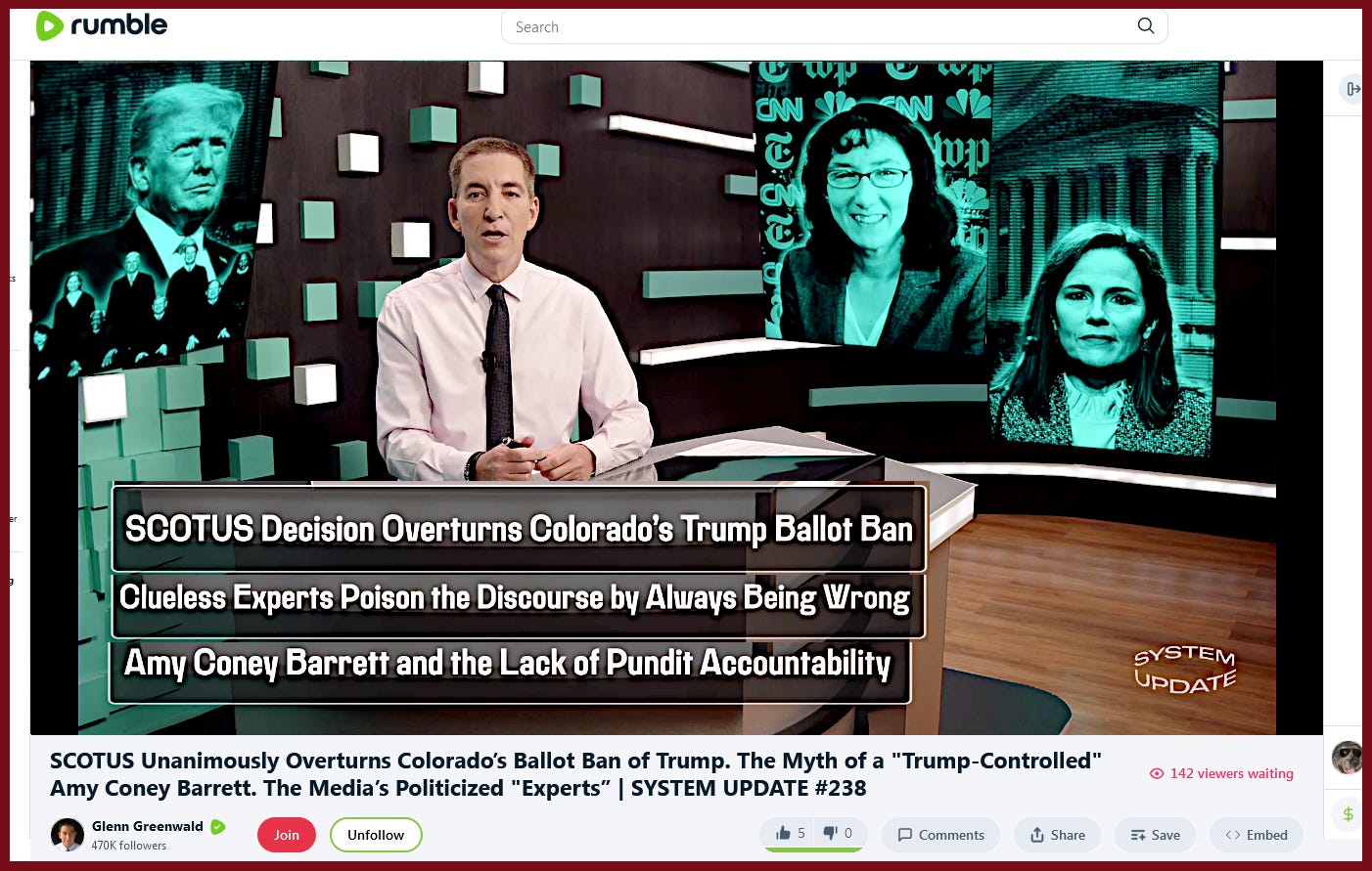 “SCOTUS Unanimously Overturns Colorado’s Ballot Ban of Trump. The Myth of a "Trump-Controlled" Amy Coney Barrett. The Media’s Politicized "Experts” | SYSTEM UPDATE #238”