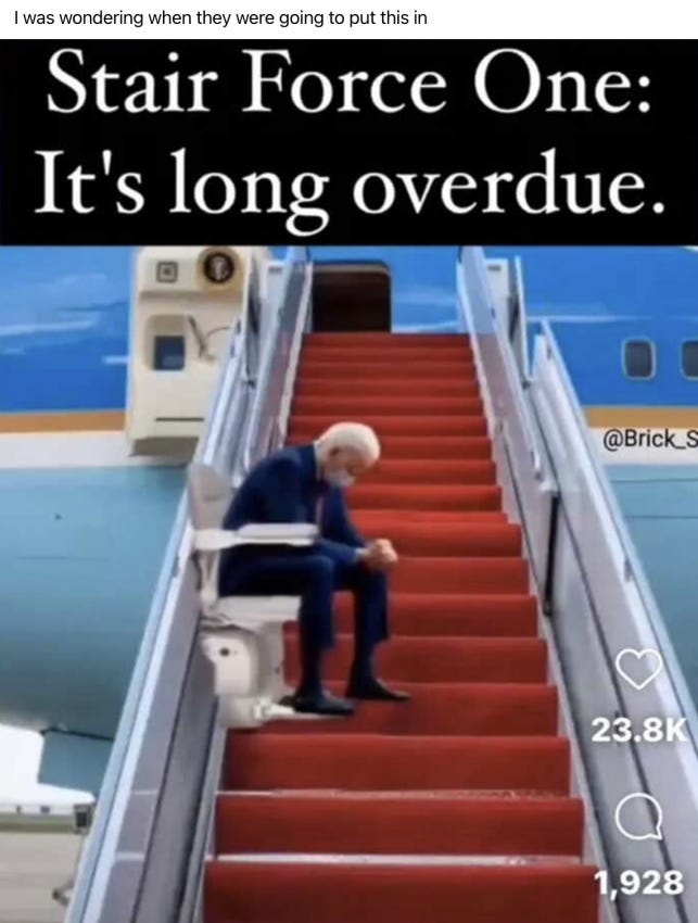 [Current popular Memes and Images - which reflect common thoughts of many - may be found on the SubStack version – Facebook Witches will/have punished my sharing of such.]